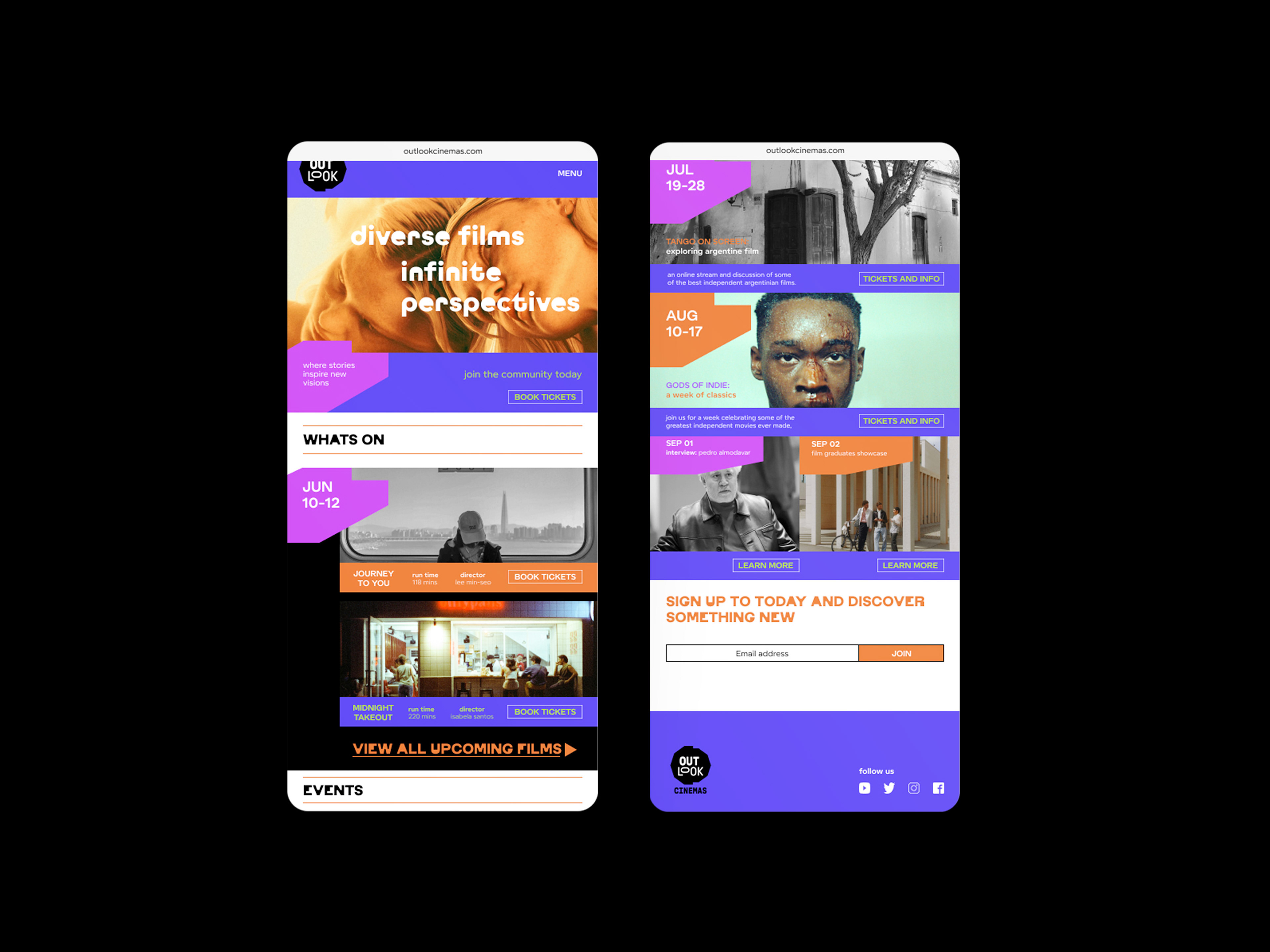 Outlook Cinemas are an independent cinema franchise who embrace the diversity of film. The brand identity was inspired by the perspective that film and particularly world cinema can bring.
